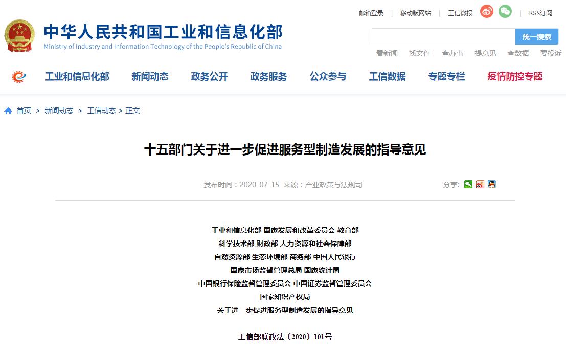 十五部门关于进一步促进服务型制造发展的指导意见