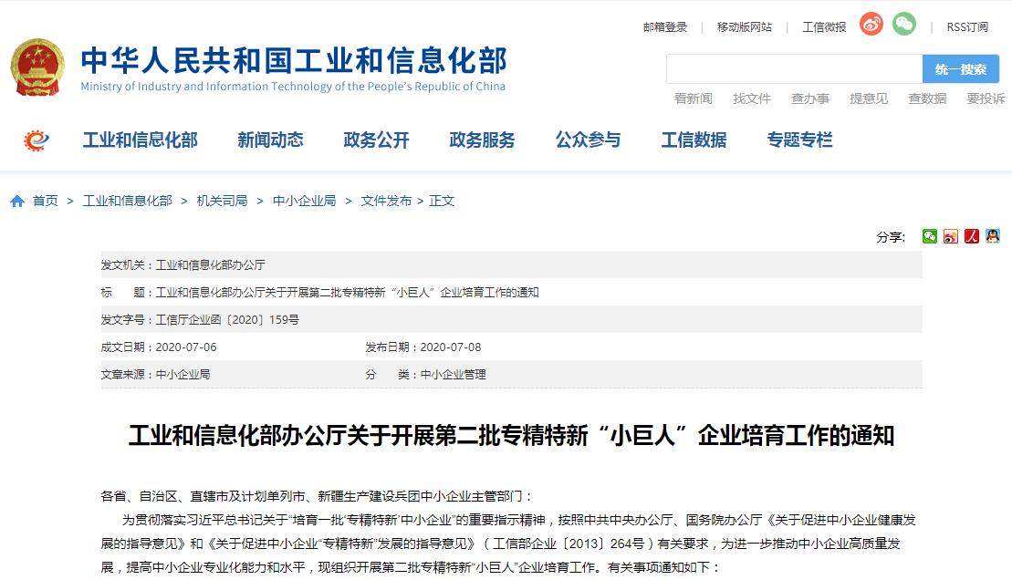 工信部组织开展第二批专精特新“小巨人”企业培育工作