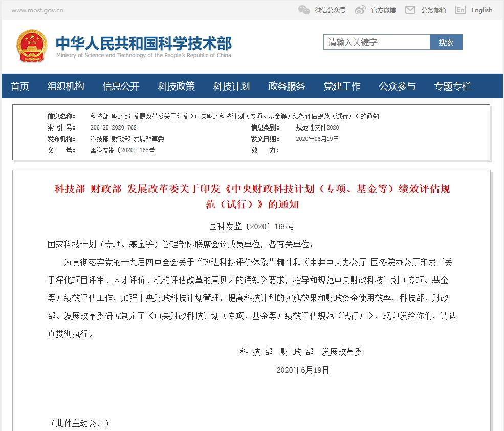 科技部等三部委印发通知 中央财政科技计划有了绩效评估规范